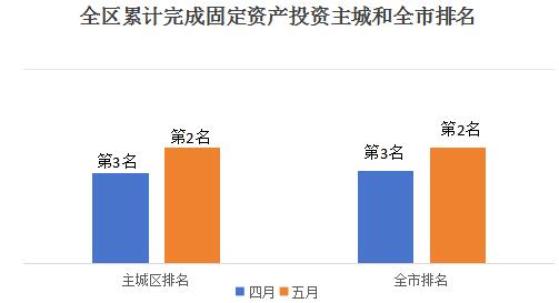 2023年1-5月全区累计完成固定资产投资同比增长10.4%,高于全市平均水平10.3个百分点,排名主城第二、全市第二,全市排名较上月提升一位。